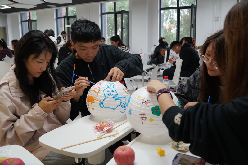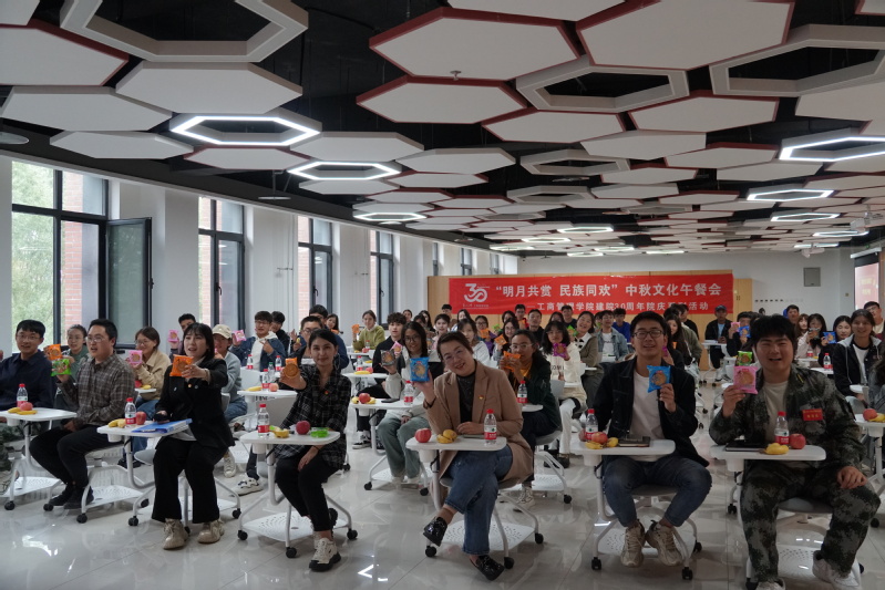 午餐会上,同学们积极参与了猜灯谜、蒙眼尝月饼、月饼接力赛等趣味横生的小游戏,领取了活动奖品,现场笑声连连,气氛热烈。活动的最后同学们手执画笔,同心协力,在灯笼上绘出了对民族团结的美好祝愿和对未来生活的无限憧憬。